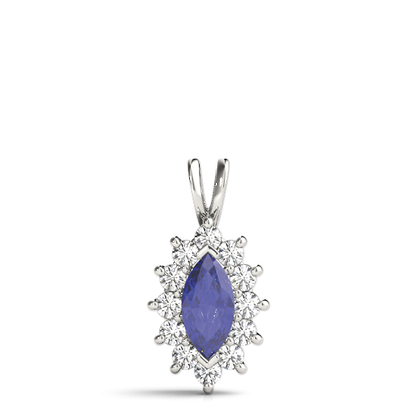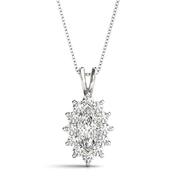14k White Gold Pendant with 1 – 10×5 Marquise & 14 – .04PT Round Stones, equal to 1/2 carats total weight. Can be customized to fit any stone and in any material. Please contact Ronelli Corp for custom orders and modification information, as pricing may vary.