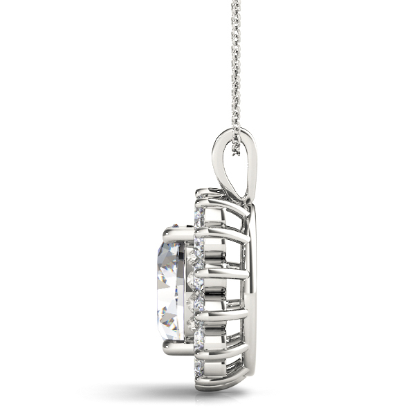 14k White Gold Pendant with 1 – 10×8 Oval & 14 – .06PT Round Stones, equal to 7/8 carats total weight. Can be customized to fit any stone and in any material. Please contact Ronelli Corp for custom orders and modification information, as pricing may vary.