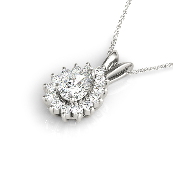14k White Gold Pendant with 1 – 10×7 Pear & 17 – .03PT Round Stones, equal to 1/2 carats total weight. Can be customized to fit any stone and in any material. Please contact Ronelli Corp for custom orders and modification information, as pricing may vary.