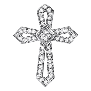 14k White Gold Pendant with 48 – .011PT Round Stones, equal to 1/2 carats total weight. Can be customized to fit any stone and in any material. Please contact Ronelli Corp for custom orders and modification information, as pricing may vary.