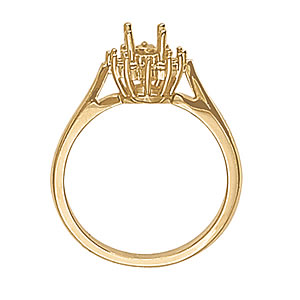 14k White Gold Color Ring with 1 – 6×4 Oval & 12 – .02PT Round Stones, equal to 1/4 carats total weight. Can be customized to fit any stone and in any material. Please contact Ronelli Corp for custom orders and modification information, as pricing may vary.