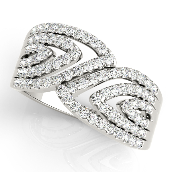 14k White Gold Fashion Ring with 84 – .006PT Round Stones, equal to 1/2 carats total weight. Can be customized to fit any stone and in any material. Please contact Ronelli Corp for custom orders and modification information, as pricing may vary.