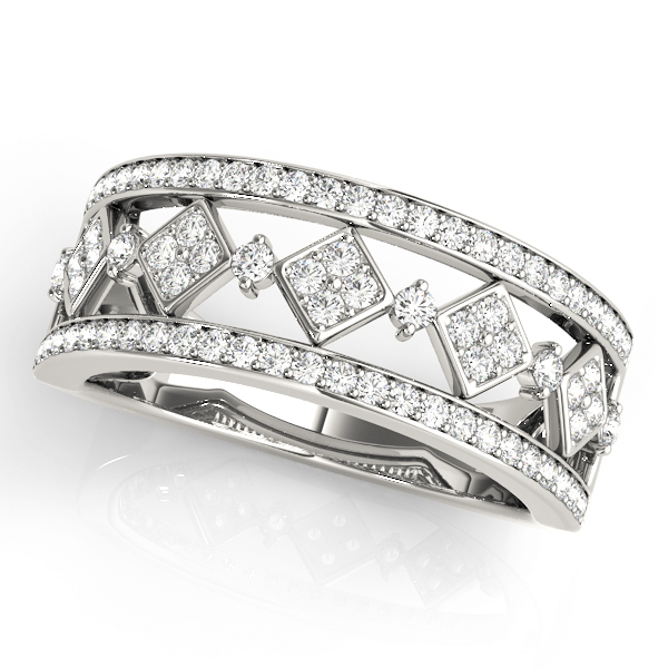 14k White Gold Fashion Ring with 70 – .005PT Round & 6 – .025PT Round Stones, equal to 1/2 carats total weight. Can be customized to fit any stone and in any material. Please contact Ronelli Corp for custom orders and modification information, as pricing may vary.