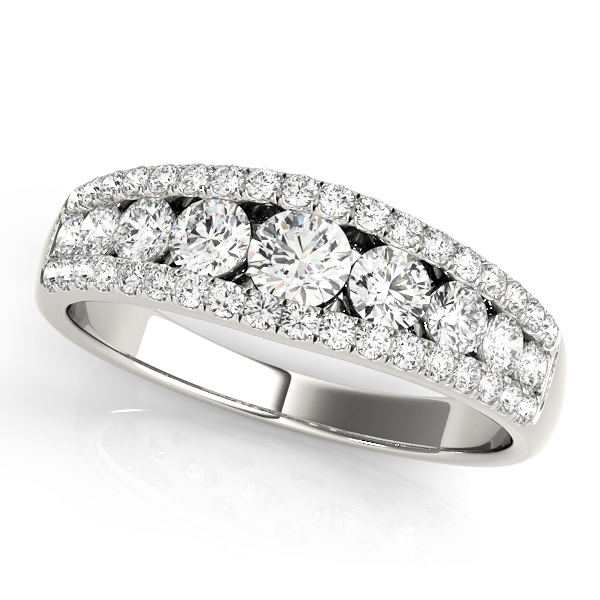 14k White Gold Fashion Ring with 1 – .16PT Round & 36 – .005PT Round & 2 – .025PT Round & 2 – .045PT Round & 2 – .07PT Round & 2 – .12PT Round Stones, equal to 7/8 carats total weight. Can be customized to fit any stone and in any material. Please contact Ronelli Corp for custom orders and modification information, as pricing may vary.