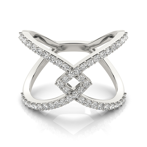 14k White Gold Fashion Ring with 50 – .01PT Round Stones, equal to 1/2 carats total weight. Can be customized to fit any stone and in any material. Please contact Ronelli Corp for custom orders and modification information, as pricing may vary.
