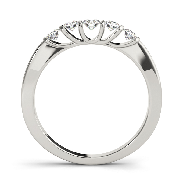 14k White Gold Wedding Band with 1 – .1PT Round & 4 – .05PT Round Stones, equal to 1/3 carats total weight. This ring has an optional matching Engagement Ring. Can be customized to fit any stone and in any material. Please contact Ronelli Corp for custom orders and modification information, as pricing may vary.