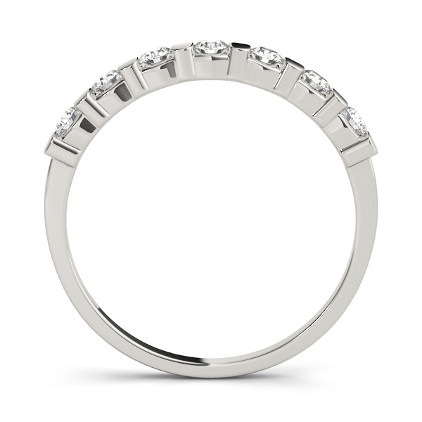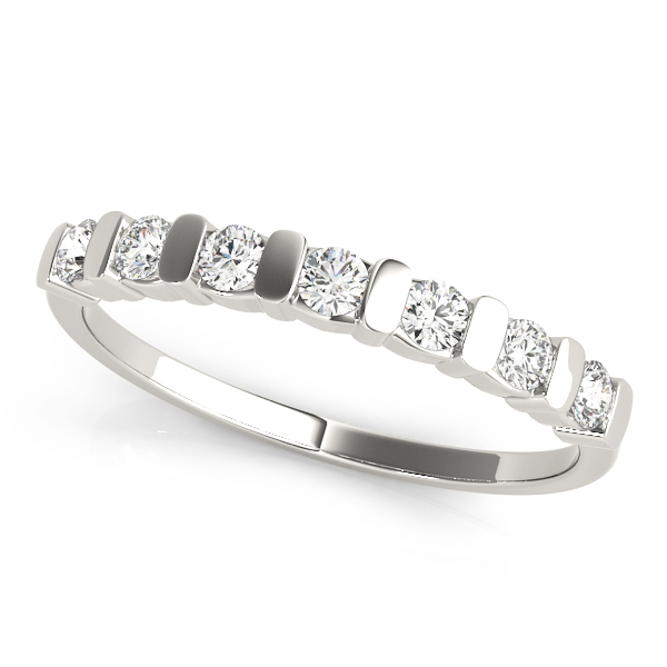 14k White Gold Wedding Band with 7 – .04PT Round Stones, equal to 1/4 carats total weight. Can be customized to fit any stone and in any material. Please contact Ronelli Corp for custom orders and modification information, as pricing may vary.