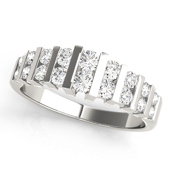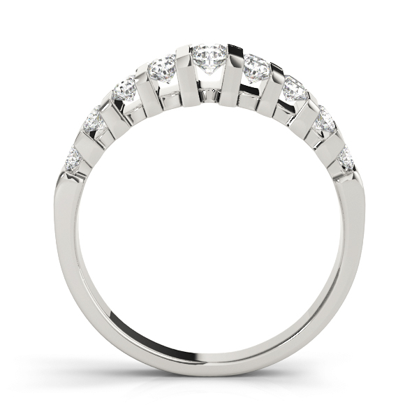 14k White Gold Wedding Band with 4 – .02PT Round & 4 – .025PT Round & 4 – .035PT Round & 4 – .05PT Round & 2 – .1PT Round Stones, equal to 3/4 carats total weight. Can be customized to fit any stone and in any material. Please contact Ronelli Corp for custom orders and modification information, as pricing may vary.