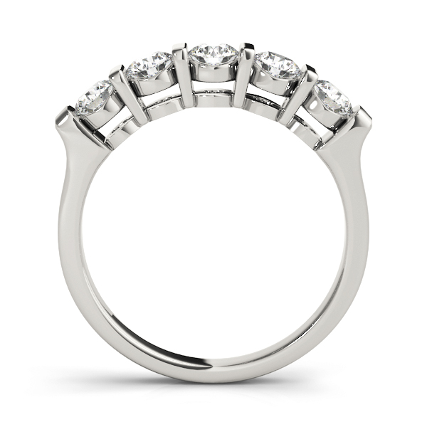 14k White Gold Wedding Band with 5 – .15PT Round Stones, equal to 3/4 carats total weight. Can be customized to fit any stone and in any material. Please contact Ronelli Corp for custom orders and modification information, as pricing may vary.