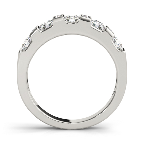 14k White Gold Wedding Band with 5 – .12PT Round & 8 – .01PT Round Stones, equal to 5/8 carats total weight. Can be customized to fit any stone and in any material. Please contact Ronelli Corp for custom orders and modification information, as pricing may vary.