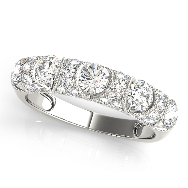 14k White Gold Wedding Band with 1 – .15PT Round & 2 – .12PT Round & 2 – .1PT Round & 12 – .02PT Round & 16 – .01PT Round Stones, equal to 1 carats total weight. Can be customized to fit any stone and in any material. Please contact Ronelli Corp for custom orders and modification information, as pricing may vary.