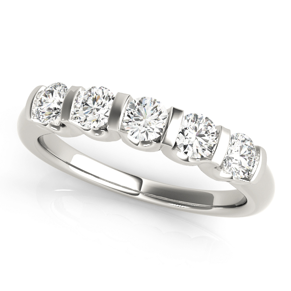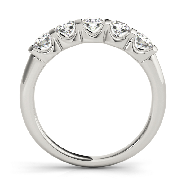 14k White Gold Wedding Band with 5 – .2PT Round Stones, equal to 1 carats total weight. Can be customized to fit any stone and in any material. Please contact Ronelli Corp for custom orders and modification information, as pricing may vary.