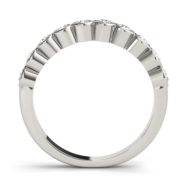14k White Gold Wedding Band with 12 – .02PT Round Stones, equal to 1/4 carats total weight. This ring has an optional matching Engagement Ring. Can be customized to fit any stone and in any material. Please contact Ronelli Corp for custom orders and modification information, as pricing may vary.