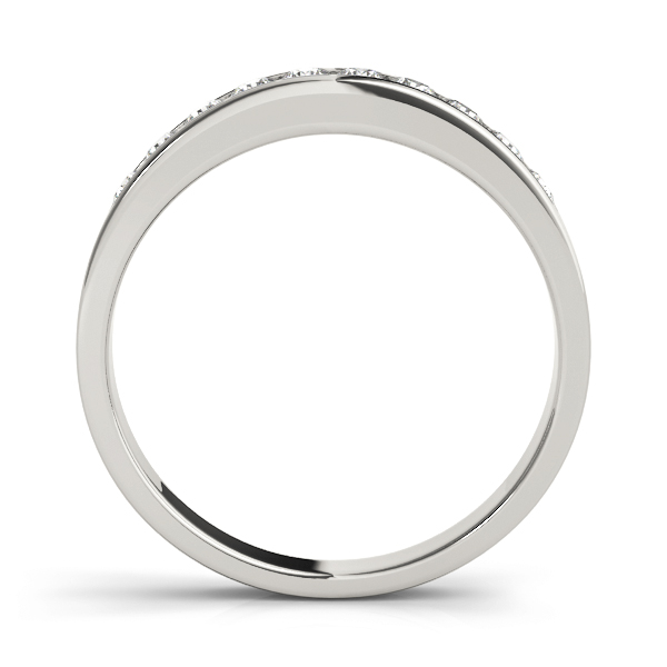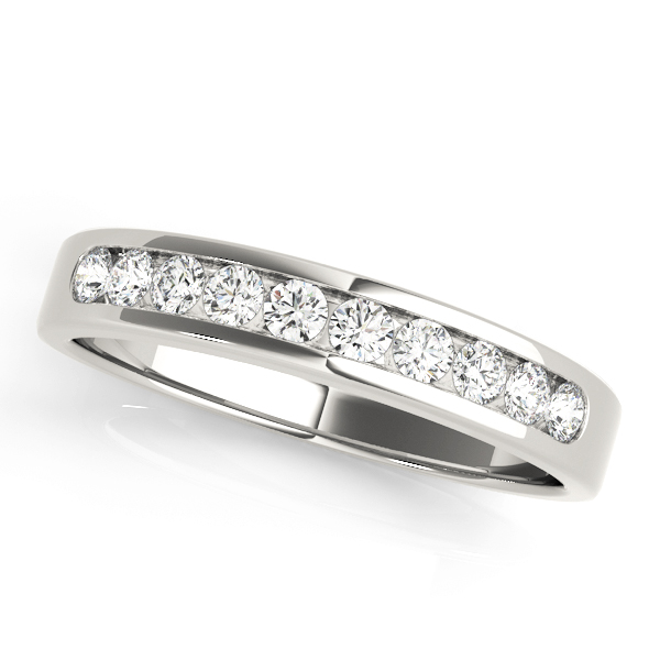 14k White Gold Wedding Band with 10 – .025PT Round Stones, equal to 1/4 carats total weight. This ring has an optional matching Engagement Ring. Can be customized to fit any stone and in any material. Please contact Ronelli Corp for custom orders and modification information, as pricing may vary.