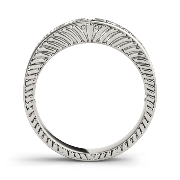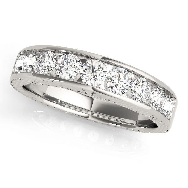 14k White Gold Wedding Band with 3 – .1PT Round & 8 – .08PT Round Stones, equal to 7/8 carats total weight. This ring has an optional matching Engagement Ring. Can be customized to fit any stone and in any material. Please contact Ronelli Corp for custom orders and modification information, as pricing may vary.