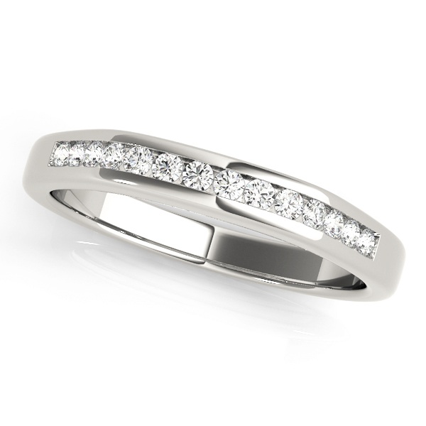 14k White Gold Wedding Band with 14 – .015PT Round Stones, equal to 1/5 carats total weight. This ring has an optional matching Engagement Ring. Can be customized to fit any stone and in any material. Please contact Ronelli Corp for custom orders and modification information, as pricing may vary.