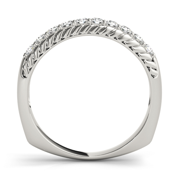 14k White Gold Wedding Band with 10 – .025PT Round Stones, equal to 1/4 carats total weight. This ring has an optional matching Engagement Ring. Can be customized to fit any stone and in any material. Please contact Ronelli Corp for custom orders and modification information, as pricing may vary.