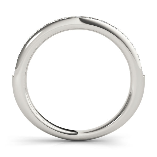 14k White Gold Wedding Band with 18 – .015PT Round Stones, equal to 1/4 carats total weight. This ring has an optional matching Engagement Ring. Can be customized to fit any stone and in any material. Please contact Ronelli Corp for custom orders and modification information, as pricing may vary.