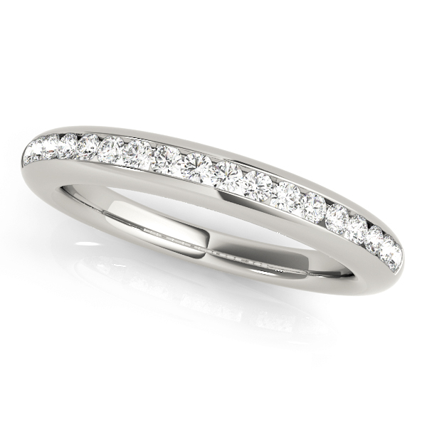 14k White Gold Wedding Band with 18 – .015PT Round Stones, equal to 1/4 carats total weight. This ring has an optional matching Engagement Ring. Can be customized to fit any stone and in any material. Please contact Ronelli Corp for custom orders and modification information, as pricing may vary.