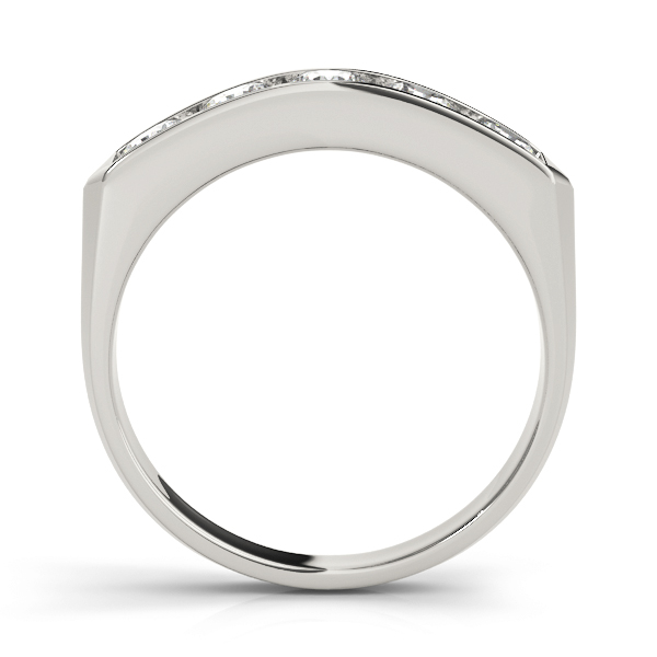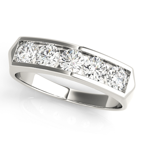 14k White Gold Wedding Band with 5 – .17PT Round Stones, equal to 7/8 carats total weight. Can be customized to fit any stone and in any material. Please contact Ronelli Corp for custom orders and modification information, as pricing may vary.