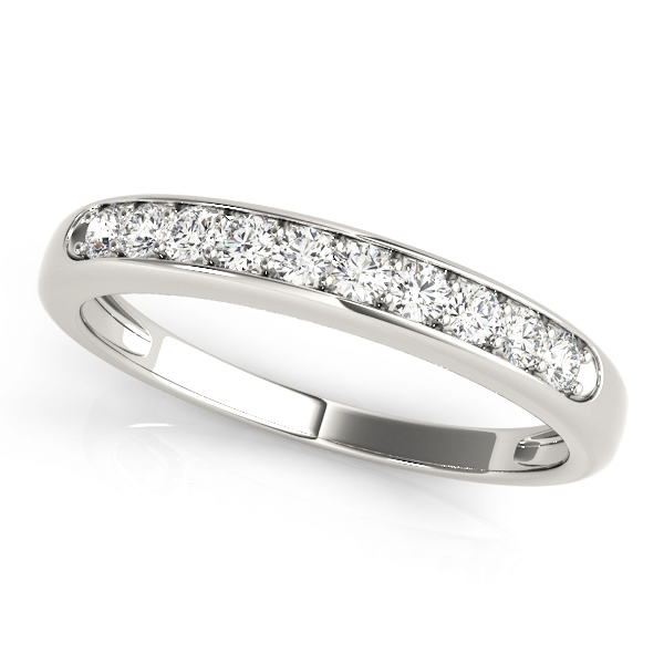14k White Gold Wedding Band with 10 – .025PT Round Stones, equal to 1/4 carats total weight. Can be customized to fit any stone and in any material. Please contact Ronelli Corp for custom orders and modification information, as pricing may vary.