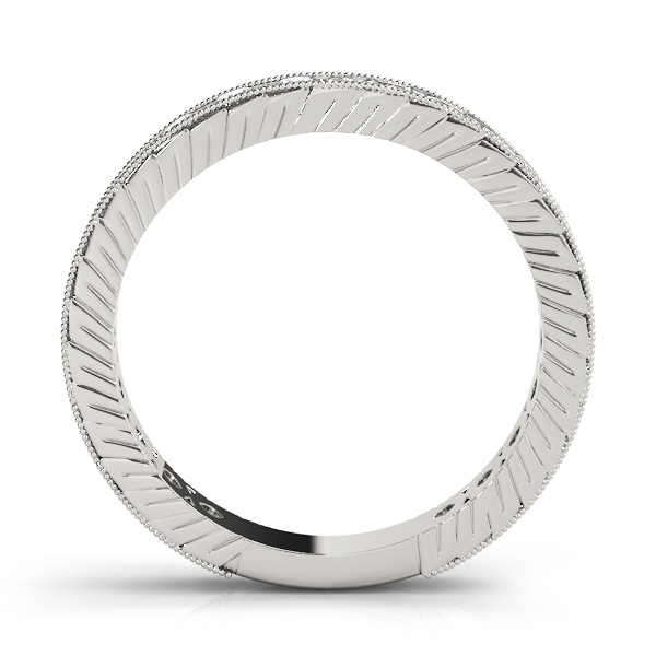 14k White Gold Wedding Band with 22 – .035PT Round Stones, equal to 3/4 carats total weight. Can be customized to fit any stone and in any material. Please contact Ronelli Corp for custom orders and modification information, as pricing may vary.