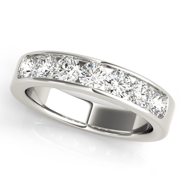 14k White Gold Wedding Band with 7 – .04PT Round Stones, equal to 1/4 carats total weight. Can be customized to fit any stone and in any material. Please contact Ronelli Corp for custom orders and modification information, as pricing may vary.