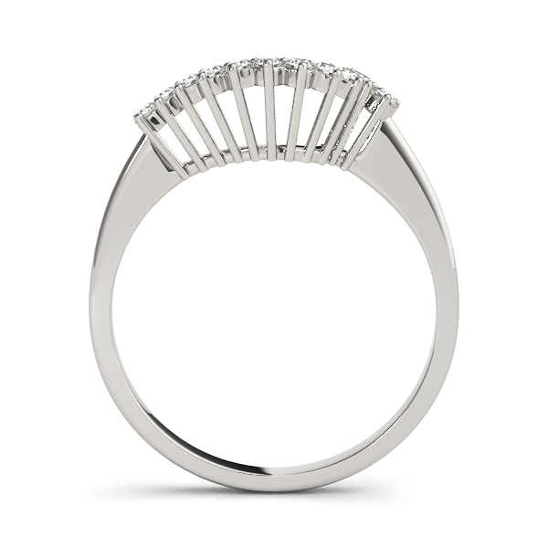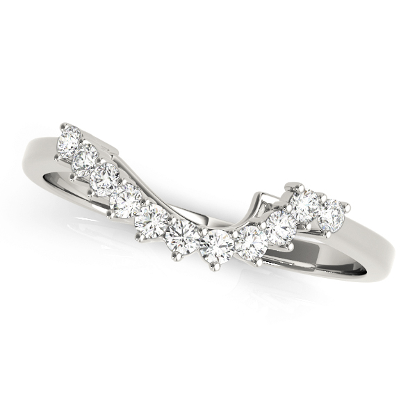 14k White Gold Wedding Band with 11 – .01PT Round Stones, equal to 1/10 carats total weight. This ring has an optional matching Engagement Ring. Can be customized to fit any stone and in any material. Please contact Ronelli Corp for custom orders and modification information, as pricing may vary.