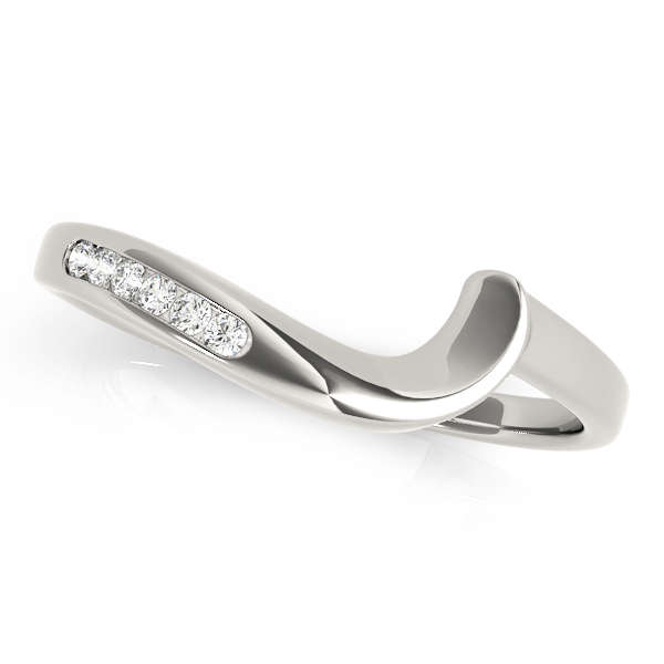 14k White Gold Wedding Band with 6 – .0075PT Round Stones, equal to 1/20 carats total weight. This ring has an optional matching Engagement Ring. Can be customized to fit any stone and in any material. Please contact Ronelli Corp for custom orders and modification information, as pricing may vary.