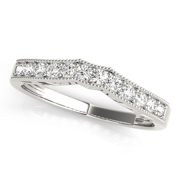 14k White Gold Wedding Band with 12 – .02PT Round Stones, equal to 1/4 carats total weight. This ring has an optional matching Engagement Ring. Can be customized to fit any stone and in any material. Please contact Ronelli Corp for custom orders and modification information, as pricing may vary.