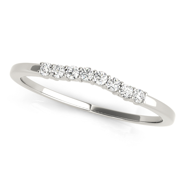 14k White Gold Wedding Band with 8 – .0125PT Round Stones, equal to 1/10 carats total weight. This ring has an optional matching Engagement Ring. Can be customized to fit any stone and in any material. Please contact Ronelli Corp for custom orders and modification information, as pricing may vary.
