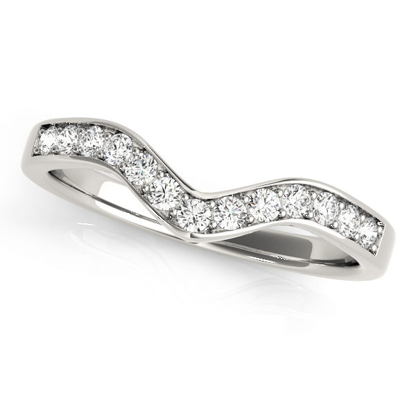 14k White Gold Wedding Band with 8 – .02PT Round & 5 – .0075PT Round Stones, equal to 1/5 carats total weight. This ring has an optional matching Engagement Ring. Can be customized to fit any stone and in any material. Please contact Ronelli Corp for custom orders and modification information, as pricing may vary.