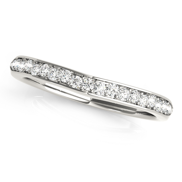 14k White Gold Wedding Band with 11 – .015PT Round & 8 – .0125PT Round Stones, equal to 1/4 carats total weight. This ring has an optional matching Engagement Ring. Can be customized to fit any stone and in any material. Please contact Ronelli Corp for custom orders and modification information, as pricing may vary.