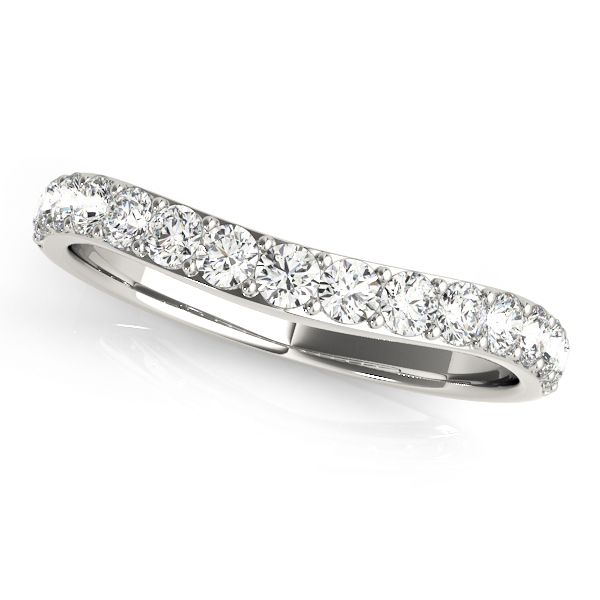 14k White Gold Wedding Band with 15 – .025PT Round Stones, equal to 3/8 carats total weight. This ring has an optional matching Engagement Ring. Can be customized to fit any stone and in any material. Please contact Ronelli Corp for custom orders and modification information, as pricing may vary.