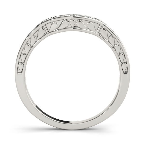 14k White Gold Wedding Band with 14 – .02PT Round Stones, equal to 1/4 carats total weight. This ring has an optional matching Engagement Ring. Can be customized to fit any stone and in any material. Please contact Ronelli Corp for custom orders and modification information, as pricing may vary.