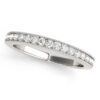 14k White Gold Wedding Band with 14 – .02PT Round Stones, equal to 1/4 carats total weight. This ring has an optional matching Engagement Ring. Can be customized to fit any stone and in any material. Please contact Ronelli Corp for custom orders and modification information, as pricing may vary.