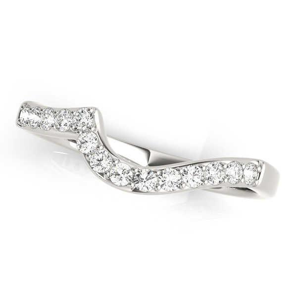 14k White Gold Wedding Band with 14 – .015PT Round Stones, equal to 1/5 carats total weight. This ring has an optional matching Engagement Ring. Can be customized to fit any stone and in any material. Please contact Ronelli Corp for custom orders and modification information, as pricing may vary.