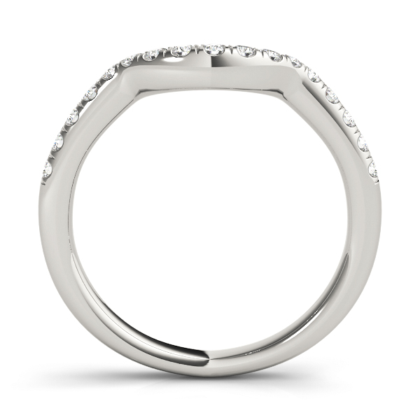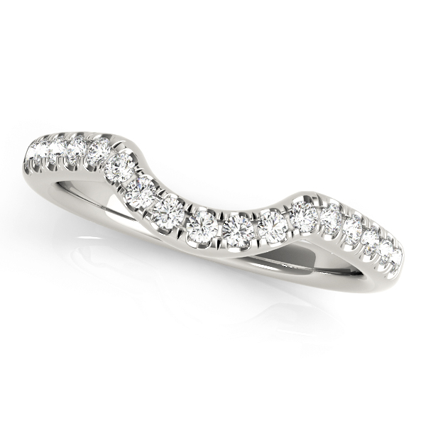 14k White Gold Wedding Band with 18 – .01PT Round Stones, equal to 1/5 carats total weight. This ring has an optional matching Engagement Ring. Can be customized to fit any stone and in any material. Please contact Ronelli Corp for custom orders and modification information, as pricing may vary.