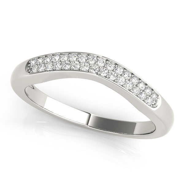 14k White Gold Wedding Band with 31 – .005PT Round Stones, equal to 1/6 carats total weight. This ring has an optional matching Engagement Ring. Can be customized to fit any stone and in any material. Please contact Ronelli Corp for custom orders and modification information, as pricing may vary.