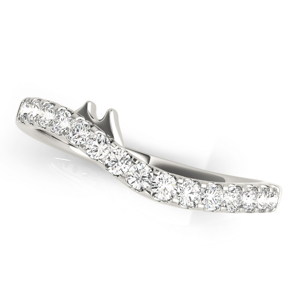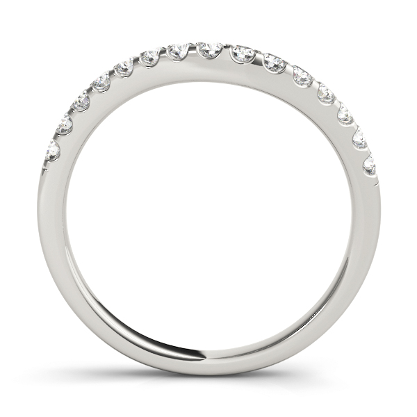 14k White Gold Wedding Band with 15 – .02PT Round Stones, equal to 1/3 carats total weight. This ring has an optional matching Engagement Ring. Can be customized to fit any stone and in any material. Please contact Ronelli Corp for custom orders and modification information, as pricing may vary.