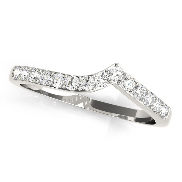 14k White Gold Wedding Band with 14 – .025PT Round Stones, equal to 1/3 carats total weight. This ring has an optional matching Engagement Ring. Can be customized to fit any stone and in any material. Please contact Ronelli Corp for custom orders and modification information, as pricing may vary.