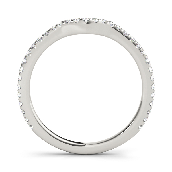 14k White Gold Wedding Band with 35 – .0075PT Round Stones, equal to 1/4 carats total weight. This ring has an optional matching Engagement Ring. Can be customized to fit any stone and in any material. Please contact Ronelli Corp for custom orders and modification information, as pricing may vary.