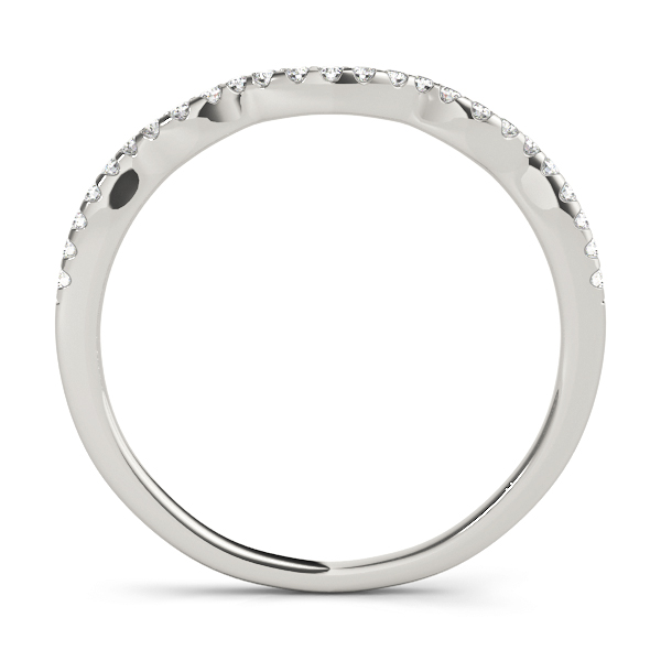 14k White Gold Wedding Band with 25 – .005PT Round Stones, equal to 1/8 carats total weight. This ring has an optional matching Engagement Ring. Can be customized to fit any stone and in any material. Please contact Ronelli Corp for custom orders and modification information, as pricing may vary.