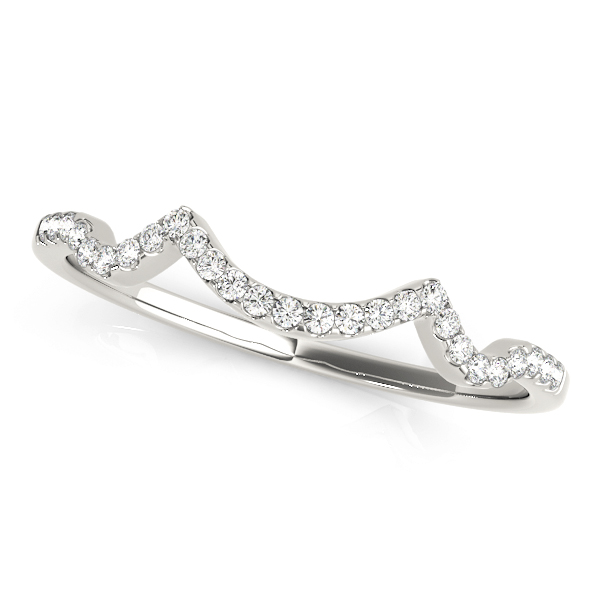 14k White Gold Wedding Band with 27 – .004PT Round Stones, equal to 1/10 carats total weight. This ring has an optional matching Engagement Ring. Can be customized to fit any stone and in any material. Please contact Ronelli Corp for custom orders and modification information, as pricing may vary.