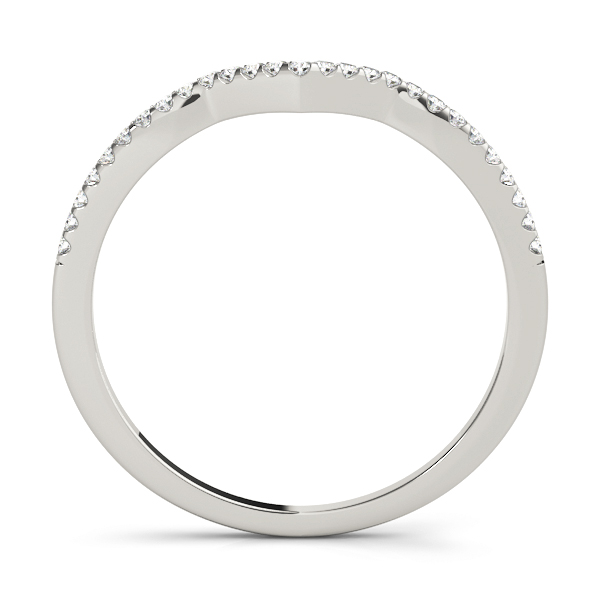 14k White Gold Wedding Band with 27 – .005PT Round Stones, equal to 1/8 carats total weight. This ring has an optional matching Engagement Ring. Can be customized to fit any stone and in any material. Please contact Ronelli Corp for custom orders and modification information, as pricing may vary.