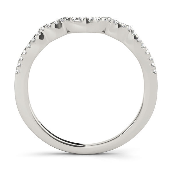 14k White Gold Wedding Band with 26 – .005PT Round Stones, equal to 1/8 carats total weight. This ring has an optional matching Engagement Ring. Can be customized to fit any stone and in any material. Please contact Ronelli Corp for custom orders and modification information, as pricing may vary.