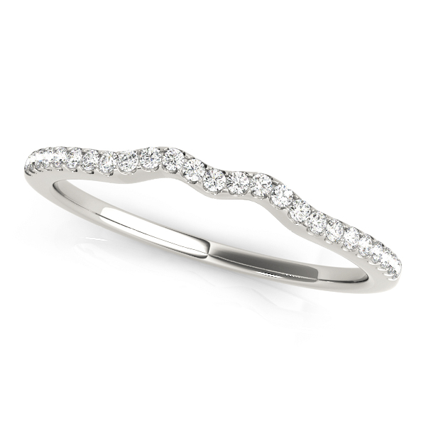 14k White Gold Wedding Band with 23 – .006PT Round Stones, equal to 1/8 carats total weight. This ring has an optional matching Engagement Ring. Can be customized to fit any stone and in any material. Please contact Ronelli Corp for custom orders and modification information, as pricing may vary.
