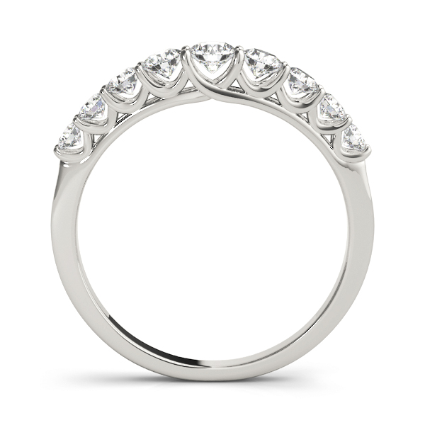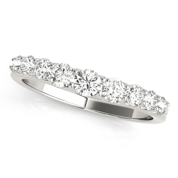 14k White Gold Wedding Band with 2 – .04PT Round & 2 – .05PT Round & 2 – .065PT Round & 2 – .09PT Round & 1 – .12PT Round Stones, equal to 5/8 carats total weight. This ring has an optional matching Engagement Ring. Can be customized to fit any stone and in any material. Please contact Ronelli Corp for custom orders and modification information, as pricing may vary.