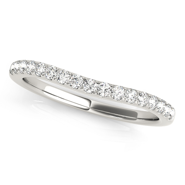 14k White Gold Wedding Band with 17 – .0125PT Round Stones, equal to 1/5 carats total weight. This ring has an optional matching Engagement Ring. Can be customized to fit any stone and in any material. Please contact Ronelli Corp for custom orders and modification information, as pricing may vary.