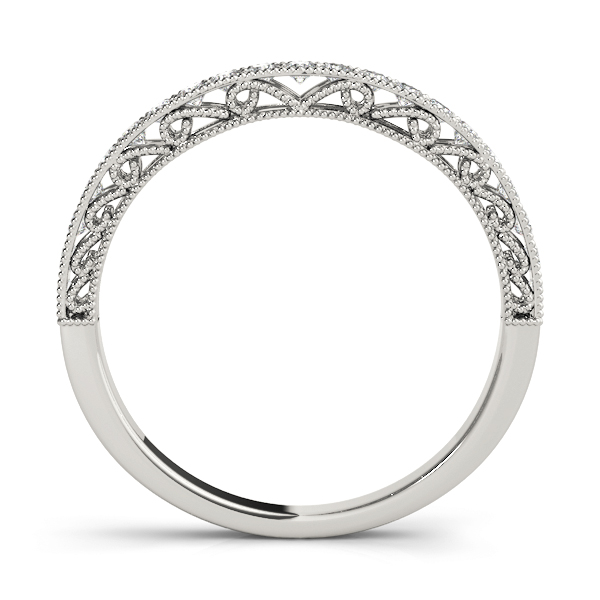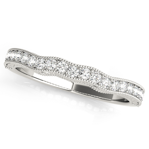 14k White Gold Wedding Band with 21 – .01PT Round Stones, equal to 1/5 carats total weight. This ring has an optional matching Engagement Ring. Can be customized to fit any stone and in any material. Please contact Ronelli Corp for custom orders and modification information, as pricing may vary.
